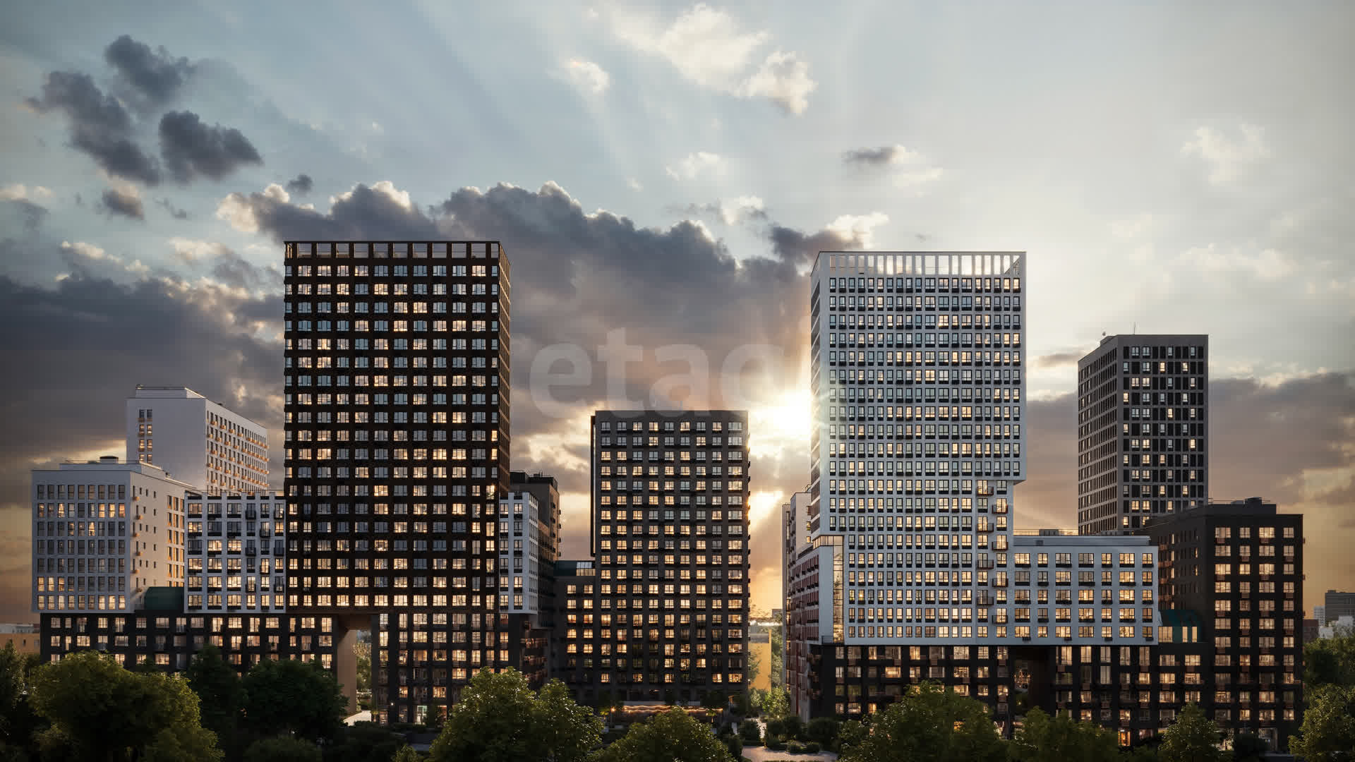 8 разноэтажных секций (12–25 этажей) образуют единый квартал с закрытой территорией.